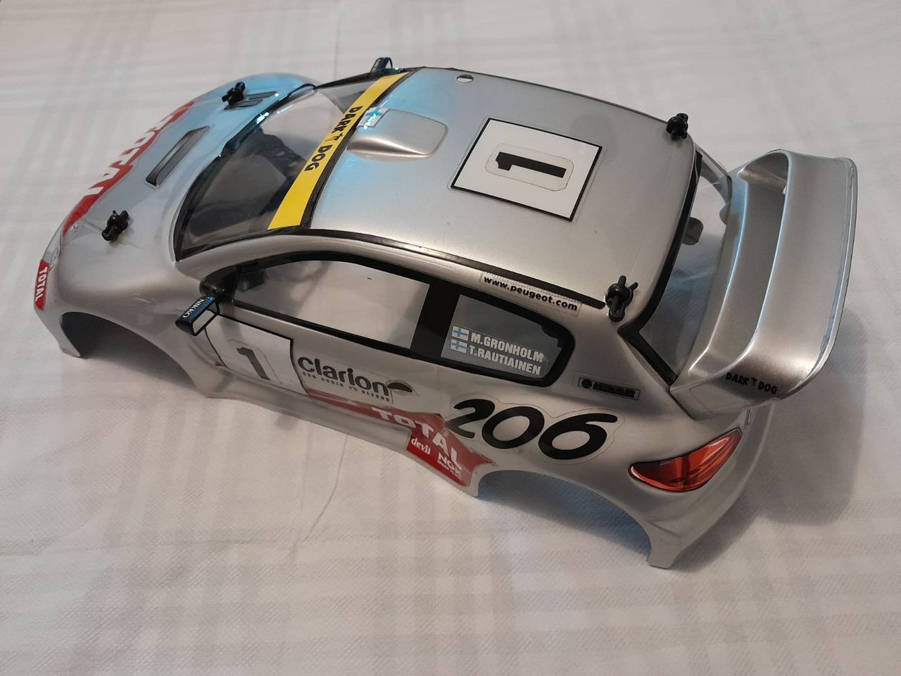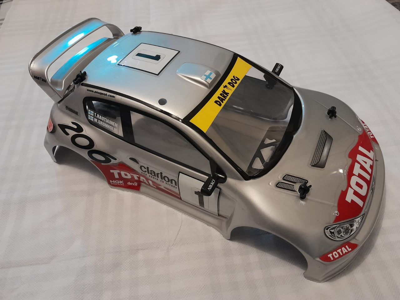 Carrosserie Peugeot 206 WRC (grise) pour Nikko Evolution 1/14 + supports et clips