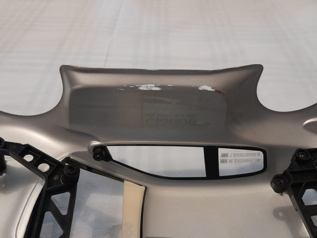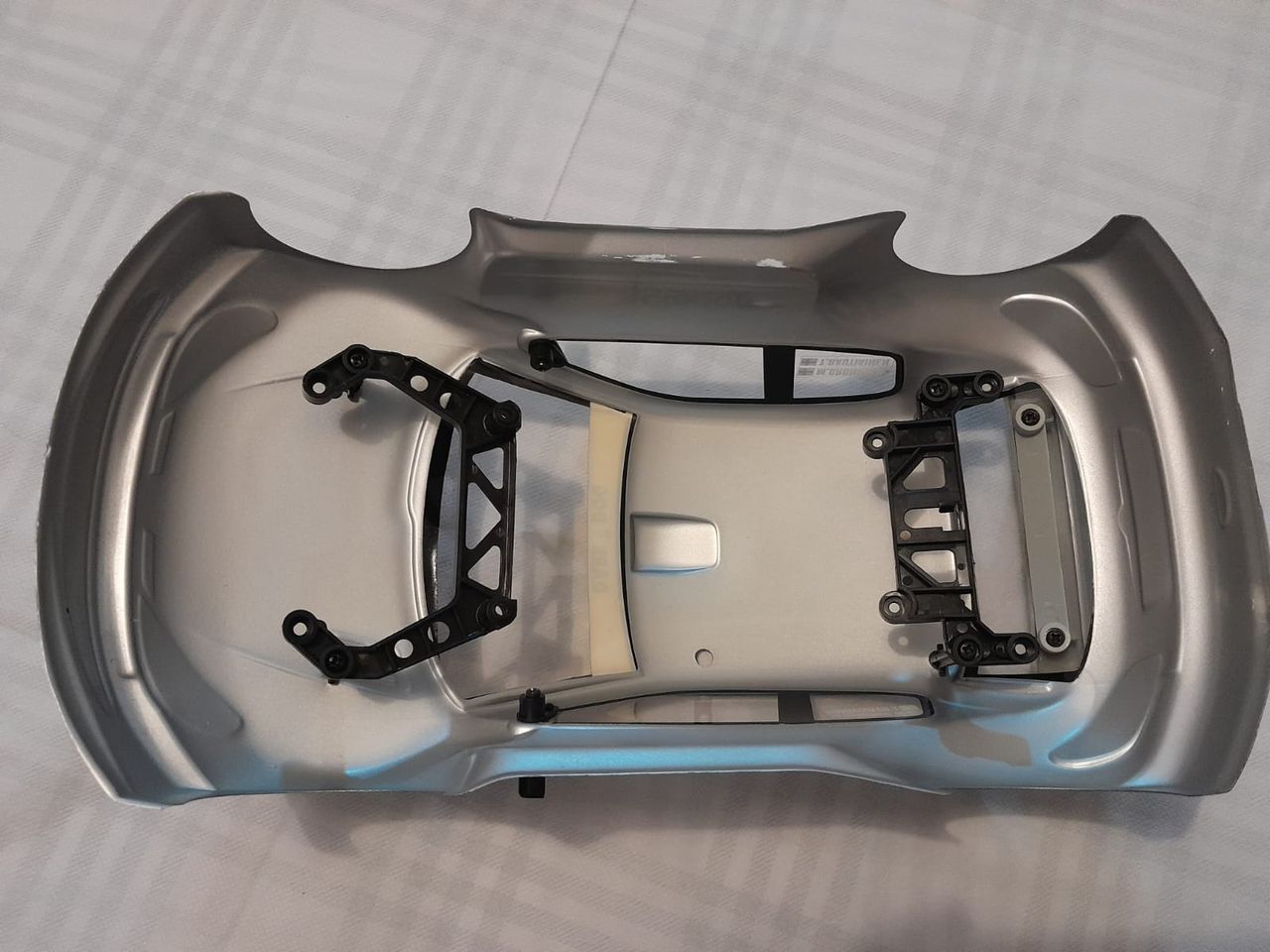 La carrosserie est également fournie avec ses supports et ses clips : il n’y a plus qu’a installer le tout sur un châssis à l’aide d’un tournevis cruciforme.