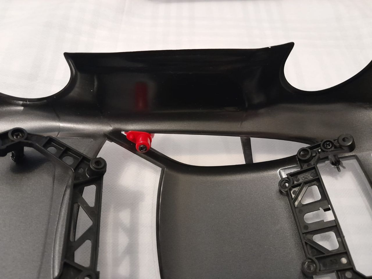 La carrosserie est également fournie avec ses supports et ses clips : il n’y a plus qu’a installer le tout sur un châssis à l’aide d’un tournevis cruciforme.