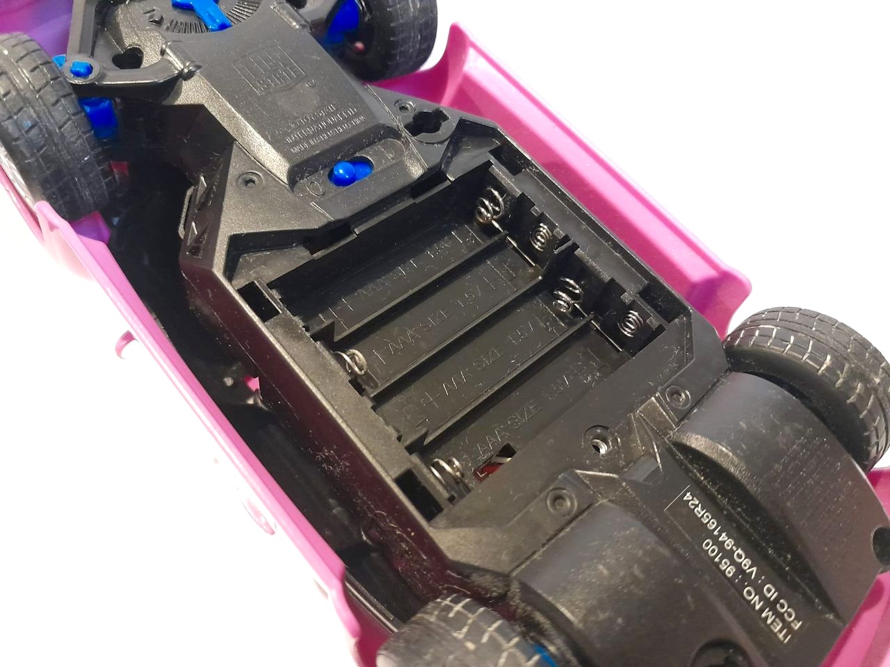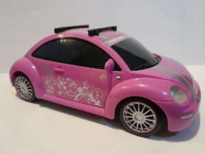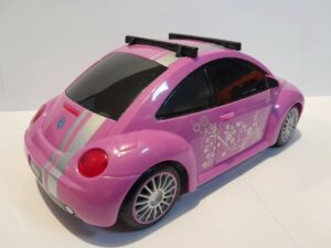 Cette petite « New Beetle » est jolie, même « sexy » avec sa couleur rose et ses décorations latérales. On reste sur du jouet, mais un jouet fort sympathique qu’on apprécie emmener dans le salon, et on prend plaisir en faisant quelques dérapages, ou en passant le plus vite possible entre un meuble et le mur opposé.