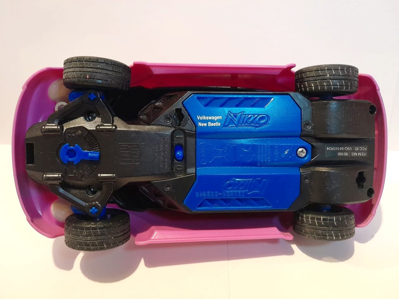 Les voitures roses, ce n’est pas courant chez Nikko, et pourtant c’est réussi ! Le véhicule étant commercialisé sous licence Volkswagen, on retrouve des proportions parfaites, ainsi que des roues du plus bel effet.